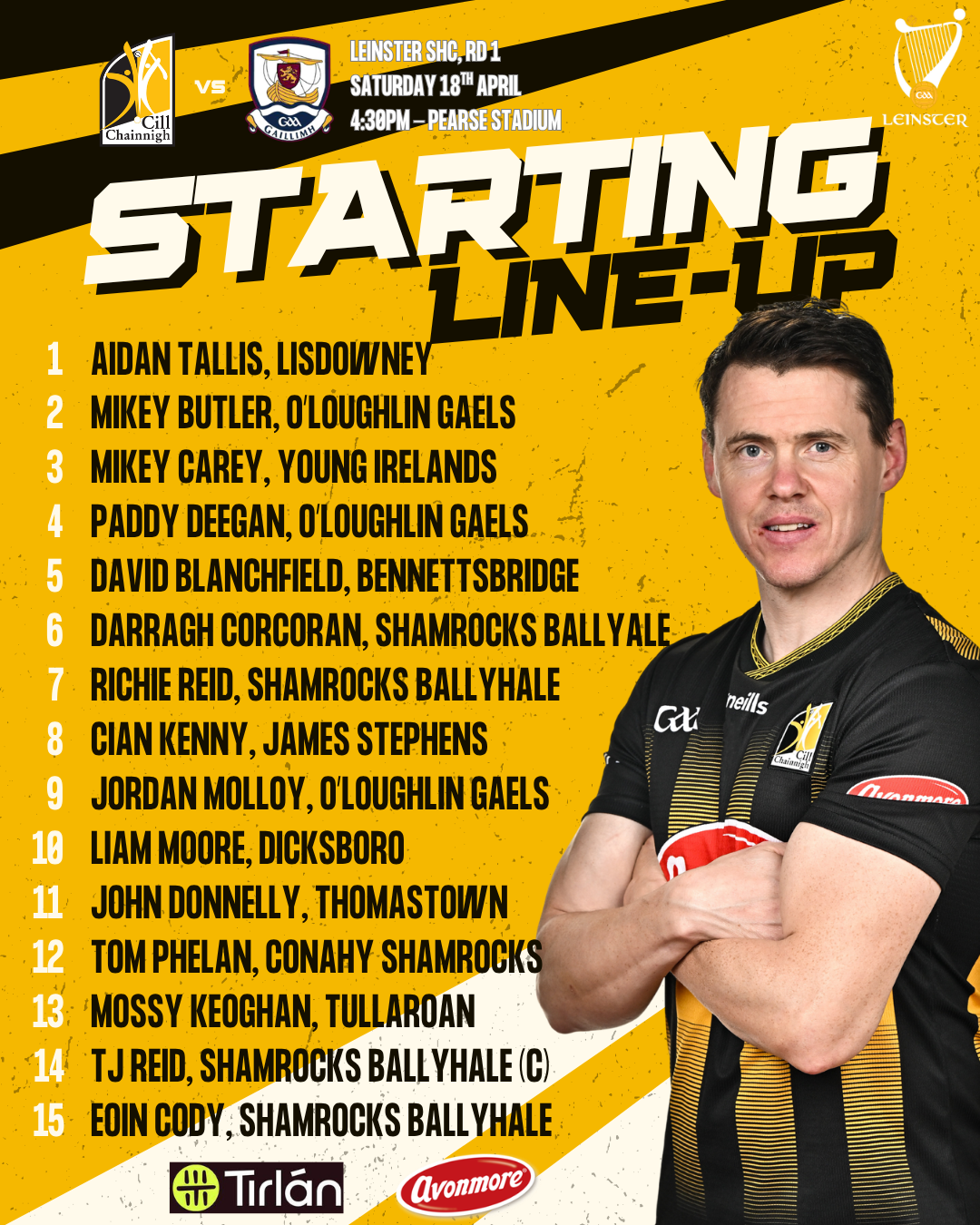 Manager Derek Lyng and his selectors have named the Kilkenny team to play Galway in round 1 of the Leinster Senior Hurling Championship in Pearse Stadium tomorrow, Saturday 18th April.  Throw-in is 4:30pm.